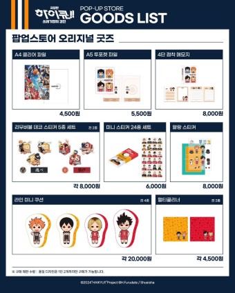 '하이큐!!' 팬이라면 누구나 탐낼 만한 한정판 굿즈가 준비되어 있습니다. 대표적으로: