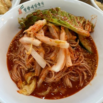 비빔국수와 만두의 완벽한 조화