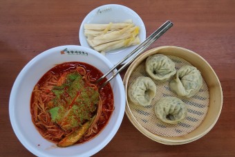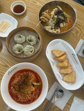 매콤한 비빔국수와 담백한 만두의 조합은 남녀노소 누구나 좋아할 만한 맛입니다. 비빔국수의 매콤함을 만두가 부드럽게 중화시켜줍니다.