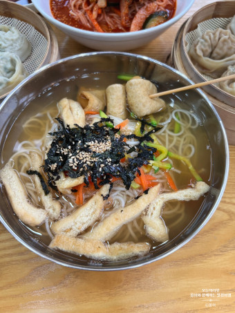 7. 망향비빔국수와 만두의 맛있는 조합