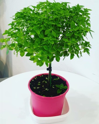 바질트리는 흔히 요리에서 사용되는 바질 허브의 일종입니다. 주로 작은 화분에 심어 실내에서 기르는 경우가 많아 실내 허브로 사랑받고 있습니다. 바질은 주로 이탈리아나 태국 요리에 자주 사용되며, 향이 강해 요리의 풍미를 더해주는 역할을 합니다.