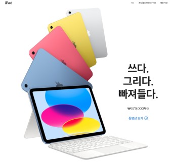 아이패드 10세대는 성능, 디자인, 가격의 완벽한 조화를 이룬 태블릿입니다.