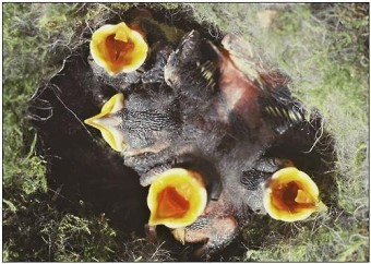 어미새는 먹이를 찾아다니며 새끼들에게 공급합니다. 어떤 새들은 입으로 씹어 먹기 쉬운 형태로 만들어 먹여주기도 합니다. 참새는 곤충을 잡아다 주고, 비둘기는 자신의 부리에서 우유 같은 액체를 만들어 새끼에게 먹입니다.