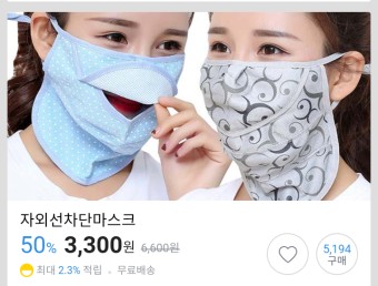 - 자외선 차단 마스크: UV 차단 원단 사용, 피부 보호 기능 추가