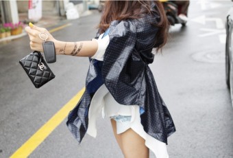 - 비 오는 날엔 작은 크기의 클러치백으로 포인트를 줘도 좋습니다.