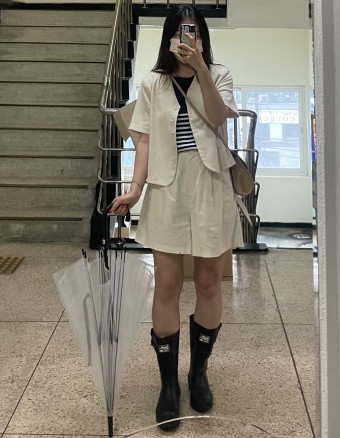 방수 아우터, 레인부츠, 방수 가방, 투명 우산 등이 필수입니다. - 레인부츠를 신으면 다리가 짧아 보일까요?