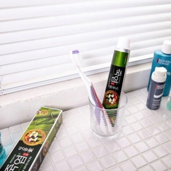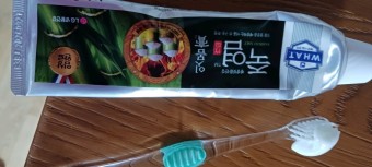 - 적당량의 치약을 짜기: 칫솔에 적당량의 죽염치약 잇몸고를 짭니다.