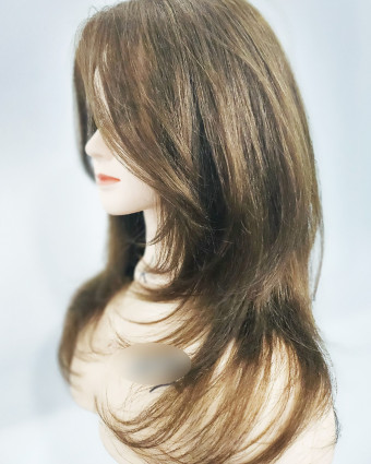 머리카락을 여러 층으로 잘라서 자연스러운 움직임과 볼륨을 주는 스타일입니다.