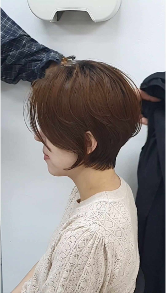 길이가 짧으면서도 볼륨을 살려주는 스타일로, 자연스럽게 얼굴을 감싸줍니다.