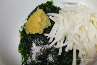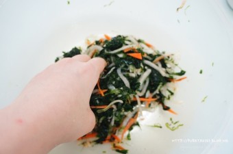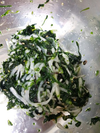 - 손으로 부드럽게 조물조물 무칩니다. (너무 세게 하면 파래가 으깨질 수 있습니다.)
