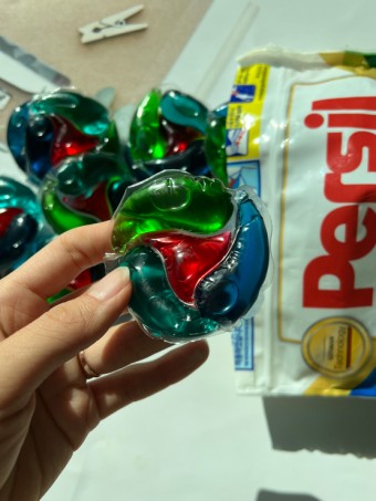 - 세탁기 넣기: 세탁기 안에 캡슐을 넣으세요. 캡슐은 세탁물 아래에 넣는 것이 좋습니다.