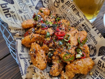 맛초킹: 맛초킹은 매콤하면서도 달콤한 소스로 마무리한 bhc의 대표 메뉴 중 하나입니다. 이 소스는 bhc만의 비법으로 만들어져 매운 맛을 좋아하는 소비자들에게 인기를 끌고 있습니다.