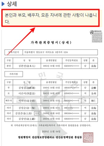 - 본인만 발급 가능: 가족관계증명서는 본인만 발급받을 수 있습니다.