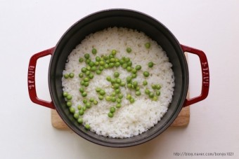 - 냄비에 쌀과 물을 넣습니다.