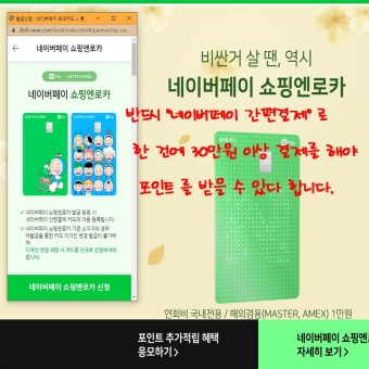 - 다양한 쇼핑몰 제휴: 네이버페이 쇼핑엔로카는 많은 온라인 쇼핑몰과 제휴하고 있어, 여러 곳에서 혜택을 누릴 수 있습니다.