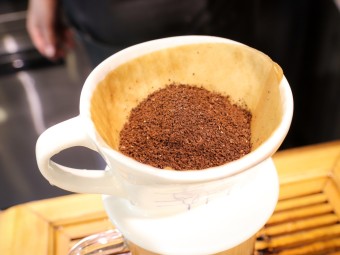 - 원두를 저울로 계량하고 적절한 분쇄도로 간다.