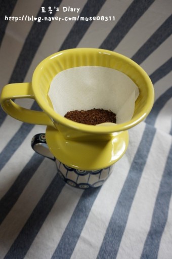- 원두를 드리퍼에 담고 뜨거운 물을 부어 예열한다.