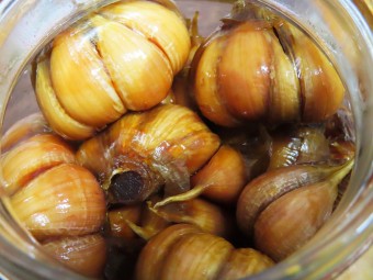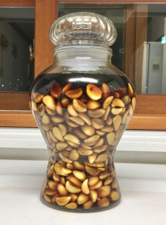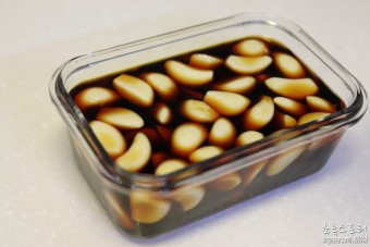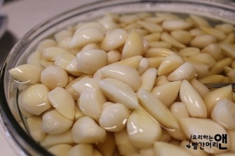 - 절인 마늘을 양념물에 담그기: 끓여서 식힌 양념물에 절인 마늘을 넣어 줍니다.