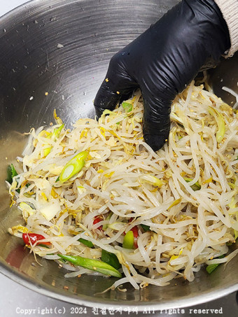 - 버무리기: 준비된 숙주나물에 양념을 넣고 골고루 버무립니다.