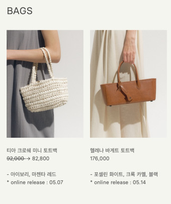 인기 모델에는 슬링백, 백팩, 클러치백 등이 있습니다.