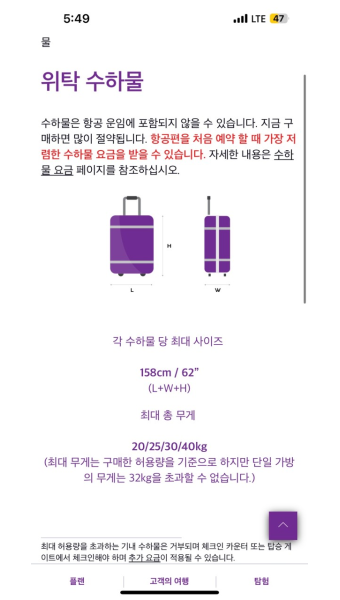 각 항공사의 규정 비교