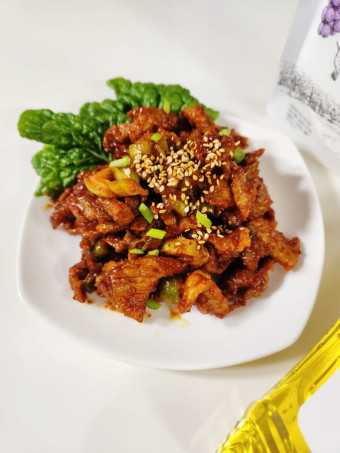- 양념이 고기에 스며들도록 볶아주고, 마지막에 참기름을 넣어 향을 더해줍니다.