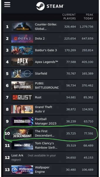 - 퍼스트 디센던트는 동접자 수에서 큰 성과를 거두며, 경쟁 게임들보다 우위를 점하고 있습니다.