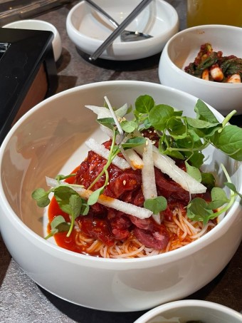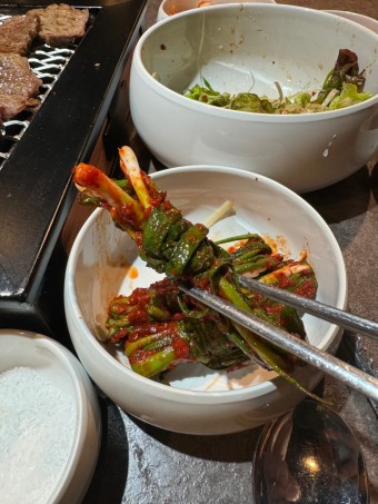 풍류각에서의 소고기만으로도 충분히 맛있지만, 이곳의 반찬은 그야말로 '찰떡궁합'을 자랑합니다. 신선한 김치와 나물, 젓갈 등 한국 전통 반찬들이 소고기의 깊은 맛을 한층 더 살려줍니다. 반찬이 소고기 맛을 돋보이게 하면서도 입맛을 돋구는 역할을 톡톡히 해내죠.