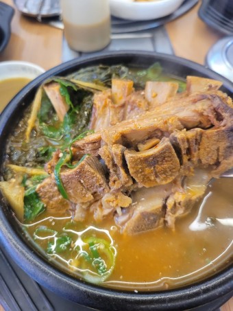 - 뼈해장국(감자탕) - 뼈가 들어가 깊고 진한 국물 맛이 일품.