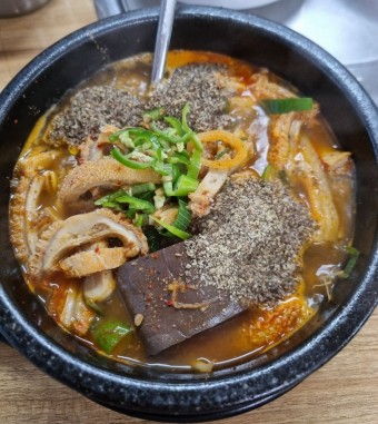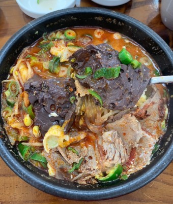 - 선지 해장국 - 소의 피로 만든 선지를 넣어 진한 맛이 특징.